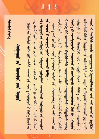 ᠥᠪᠥᠷ ᠮᠣᠩᠭᠣᠯᠤᠨ ᠣᠶ ᠰᠢᠭᠤᠶ ᠪᠠ ᠨᠤᠲᠤᠭ ᠪᠡᠯᠴᠢᠭᠡᠷᠤᠨ ᠰᠢᠰᠲ᠋ᠧᠮᠤᠨ 《ᠰᠣᠶᠣᠯ ᠪᠠ ᠪᠠᠶ᠋ᠢᠭ᠋ᠠᠯᠢ ᠵᠢᠨ ᠥᠪᠤᠨ ᠤᠬᠠᠭᠤᠯᠭᠠ ᠵᠢᠨ ᠭᠠᠷᠠᠭ》ᠤᠨ ᠠᠵᠢᠯᠯᠠᠭᠠ ᠵᠢ ᠦᠷᠨᠢᠬᠦᠯᠪᠡ